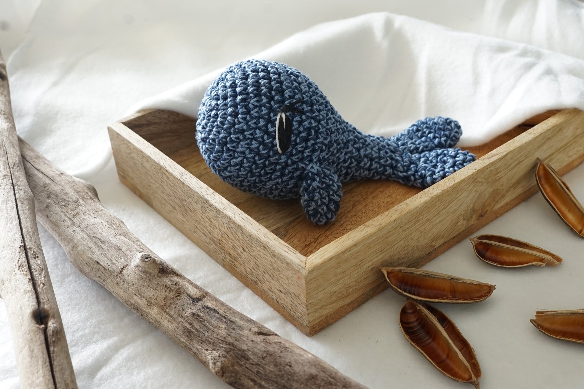 Peluche Baleine fabriqué entièrement à la main avec un fil Coton Oeko-Tex.